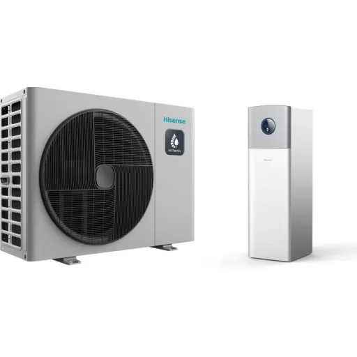 A Hisense Hi-Therma Integra AHW-080HCDS1/AHS-080HCDSAA-23 egy komplett 8 kW teljesítményű split (osztott) kivitelű levegő-víz hőszivattyú rendszer, amely 230 literes beépített használati melegvíz tartállyal érkezik. A rendszer gazdaságosan szolgálja ki otthonod teljes fűtési és melegvíz igényét, legyen szó padlófűtésről, radiátoros vagy fan-coil rendszerről. Az 1 fázisú kialakításnak köszönhetően akár lakásokban is telepíthető, ahol nincs lehetőség háromfázisú bekötésre. A reddot design díjat nyert beltéri egység elegáns megjelenésével bármilyen otthon belső terébe illeszkedik, míg a környezetbarát R32 hűtőközeg használata hosszú távon fenntartható megoldást biztosít.