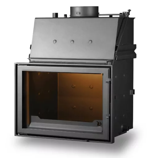 A vízteres kandallóbetét működési elve rendkívül hatékony: a tűztéren kívül egy integrált hőcserélő rendszerrel rendelkezik, amelyben víz kering. A kandalló által termelt hő közvetlenül a keringő vízbe adódik át, amely aztán eljuttatja azt a lakás fűtőtesteihez. Ez a megoldás sokkal hatékonyabb, mint a hagyományos kandallók, ahol a hő nagy része távozik a kéményen keresztül. A 200 mm-es füstcsonk átmérő megfelelő méretű kéménnyel biztosítja az optimális égést és a tiszta füstgáz elvezetést. A beépített 80 cm szélességgel, 96 cm magassággal és 53,5 cm mélységgel a betét könnyen beépíthető különböző burkolatokba. Az 55 literes víztartály elegendő hőtároló kapacitást biztosít az egyenletes hőleadáshoz és a fűtési rendszer stabil üzeméhez.
