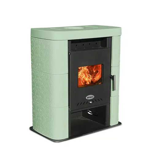 A Senko SP 5,2kW szabadonálló kandallókályha a hagyományos fatüzelés és a modern technológia tökéletes ötvözete. A mentazöld kerámia burkolat nemcsak vizuálisan teszi különlegessé a készüléket, hanem kiváló hőtároló képességével hosszan tartó, kellemes meleget biztosít az égés befejezése után is. A kompakt méreteinek köszönhetően kisebb terekben is ideálisan elhelyezhető, miközben 5,2 kW névleges teljesítményével akár 50-80 m² alapterületű helyiség fűtésére is alkalmas. Az ECOdesign irányelvnek megfelelő konstrukció garantálja a tiszta, hatékony égést minimális károsanyag-kibocsátással, így környezetbarát választás a tudatos vásárlók számára.