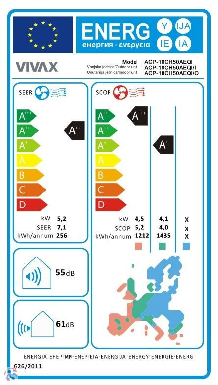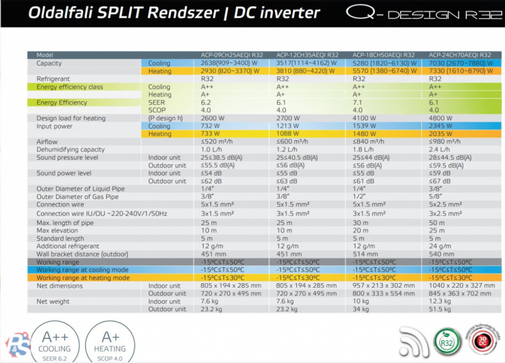 -Energiahatékonység (Hűtés / Fűtés): A++ / A+