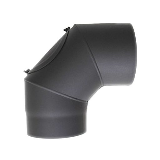 Acél 90 fokos füstcső könyök tisztítónyílással, átmérő 130mm, vegyestüzelésű kazánhoz, vastagfalú (2mm), fekete