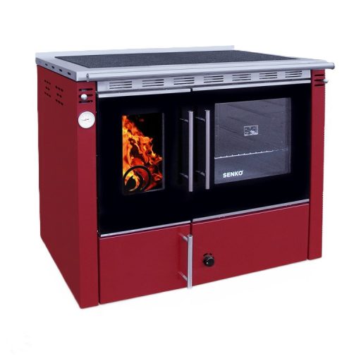 A Senko C-25 Premium központi fűtésű, szilárd tüzelésű tűzhely a konyhai főzés–sütés mellett a használati melegvíz előállítására és akár a teljes épület fűtésére is alkalmas. A C-20 széria minőségére épít, de nagyobb sütővel és tűztérrel (panorámás üveggel), valamint új külső dizájnnal. A készülék kizárólag központi fűtésrendszerre köthető és így üzemeltethető. A bordó (PC-2) színű porcelán burkolat elegáns megjelenést biztosít, miközben a 20 literes víztartalmú kazán megbízható hőleadást garantál akár 18 kW teljesítménnyel a fűtésrendszer felé. A panorámás tűzálló üvegajtó lehetővé teszi a láng gyönyörködtetését, míg a nagy főzőlap (860×440 mm) kényelmes munkaterületet biztosít a mindennapos használat során.